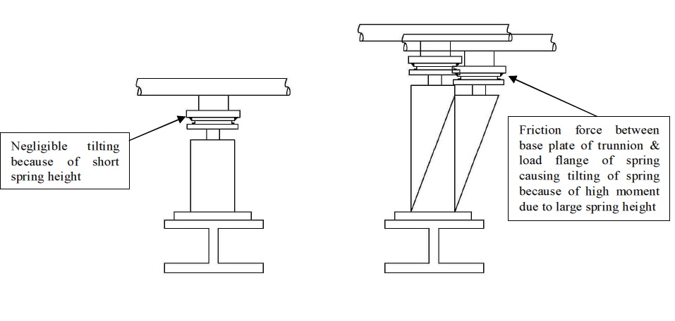 - For the can type springs the spring height should be kept minimum from a stability point of view. If the spring height is less the moment of spring will reduce and the tilting of the spring (Fig. 5) can be avoided or significantly minimized.